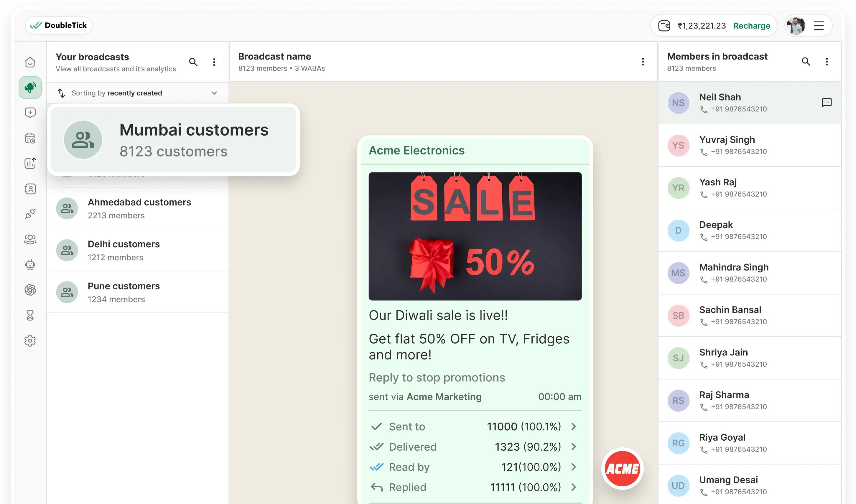 Reach your entire customers base on WhatsApp in a single click at lightning speed